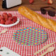 Square shapes, colourful illustration, blue, yellow, orange, pink.