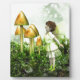 A curious young fairy examines a group of yellow toadstools on a mossy bank in this original fantasy artwork, created in DAZ 3D by artist Jayne Wilson.