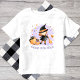 The Cutest Little Witch Halloween girl t-shirt with cute watercolor girl witch, pumpkins and black cat in purple, orange and black.