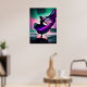 The Dance - an AI Fantasy Digital Art Print silhouette double exposure portrait. A Flamenco Dancer at one with nature, dances under a starry cosmic sky, as the ocean waves roll in behind her.