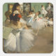 This work and its variant in the Musée d'Orsay, Paris, represent the most ambitious paintings Degas devoted to the theme of the dance. Some twenty-four women, ballerinas and their mothers, wait while a dancer executes an "attitude" for her examination. Jules Perrot, a famous ballet master, conducts the class. The imaginary scene is set in a rehearsal room in the old Paris Opéra, which had recently burned to the ground. On the wall beside the mirror, a poster for Rossini’s Guillaume Tell pays tribute to the singer Jean-Baptiste Faure, who commissioned the picture and lent it to the 1876 Impressionist exhibition.