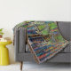 A quality printed throw has its advantages. This is a much finer weave throw than its loopier cousins, and though lighter, it is worth the investment for custom room accessorizing. The back is much prettier than the typical brown, and the fringe on the long sides very vivid, the selvage nicely done. Before photographing, I washed the throw in cold water, delicate, with a thicker woven throw the same size. On tumble dry low, this throw was dry in half the time as the other. This is a very practical quality if you use throws for furniture covers or to wrap up in frequently. The sleekness of the fabric makes it a great layer for accenting or protecting without the feeling of sitting on too much stuff. Perfect for napping or when you feel a light chill coming on. The color printing is beautiful and on this fabric, matched the design and color of my Photoshop image. This is an advantage for blending room fabrics and colors. The fringe on the short sides prints the colors from the design image and therefore varies from the side fringe. I streaked a white fractal line through the plaid pattern to give the illusion of weaving. This printed as crisp as an illusory thread, and put some white in the short side fringe, showing another advantage of print vs loomed- for artistic purposes, line lines, detail, and color integrity can be planned and preserved. My loomed throws have color limitations and more of a needlepoint texture. Print throws reproduce an exact image. The throw felt a little stiff straight out of the package, but this went away in the first delicate wash. Of course I searched the wash water for ink or bleeding and there was none.