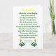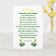 This card has two small images of a yellow dandelion flower against a white background and a cute poem by Vachel Lindsay (1879-1931), an American poet: O dandelion, rich and haughty, King of village flowers! Each day is coronation time, You have no humble hours. I like to see you bring a troop To beat the blue-grass spears, To scorn the lawn-mower that would be Like fate's triumphant shears. Your yellow heads are cut away, It seems your reign is o'er. By noon you raise a sea of stars More golden than before.