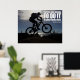 Japanese proverb - "The day you decide to do it is your lucky day"! Poster with mountain biker, silhouette style photo with sun behind, dark foreground, action scene with water and sunlight. Motivation, inspiration, drive, success! You can do it! This poster looks great in living room, bedroom, kid's rooms, family room, exercise room, garage, bike shop, anywhere you like. Seize the day.