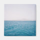 Rich blue waters of the Atlantic Ocean under a light blue sky with some of the volcanoes of Lanzarote forming a misty backdrop to the scene.