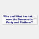 On a navy background, white letters "Who and What has taken over the Democratic Party and Platform?"