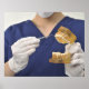 The dentist explained with a dental model poster