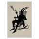 Dark humour wall art featuring the devil relaxing in a rocking chair with a cigarette, watching humanity self-destruct without his help. A satirical sketch for bold minds.