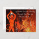 Funny postcard (perfect for Halloween or everyday) showing many red devils with pitchforks in the fires of Hell, dancing in celebration that they have tricked everyone. Quote on the postcard reads: My Greatest Trick Was Convincing The World That There Was Only One Of Me . . .