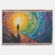 A quality printed throw has its advantages. This is a much finer weave throw than its loopier cousins, and though lighter, it is worth the investment for custom room accessorizing. The back is much prettier than the typical brown, and the fringe on the long sides very vivid, the selvage nicely done. Before photographing, I washed the throw in cold water, delicate, with a thicker woven throw the same size. On tumble dry low, this throw was dry in half the time as the other. This is a very practical quality if you use throws for furniture covers or to wrap up in frequently. The sleekness of the fabric makes it a great layer for accenting or protecting without the feeling of sitting on too much stuff. Perfect for napping or when you feel a light chill coming on. The color printing is beautiful and on this fabric, matched the design and color of my Photoshop image. This is an advantage for blending room fabrics and colors. The fringe on the short sides prints the colors from the design image and therefore varies from the side fringe. I streaked a white fractal line through the plaid pattern to give the illusion of weaving. This printed as crisp as an illusory thread, and put some white in the short side fringe, showing another advantage of print vs loomed- for artistic purposes, line lines, detail, and color integrity can be planned and preserved. My loomed throws have color limitations and more of a needlepoint texture. Print throws reproduce an exact image. The throw felt a little stiff straight out of the package, but this went away in the first delicate wash. Of course I searched the wash water for ink or bleeding and there was none.