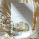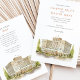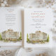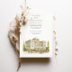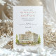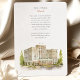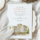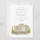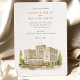 Invite your guests to a truly memorable occasion with this sophisticated watercolor wedding invitation, featuring the iconic Drake Hotel in Chicago. The artwork beautifully captures the grand, classic architecture of this renowned landmark, known for its elegant limestone-coloured facade (creams and beiges) and distinctive reddish-brown or terracotta upper sections, proudly flying American flags. Rendered in a soft, refined watercolor style, the hotel is gracefully framed by stylised trees with green and yellowish-green leaves, adding a touch of natural softness to the urban grandeur. This invitation exudes timeless Chicago elegance and is perfect for a classic, sophisticated city wedding. The front elegantly presents your wedding details, while the reverse side offers "The Finer Details" for guest information. The colour palette includes stately creams, beiges, warm reddish-browns, various shades of green and yellowish-green for the foliage, and soft atmospheric tones.