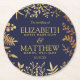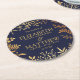 The Elegant Navy & Gold Floral Wedding Collection Round Paper Coaster
