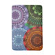 Water, fire, earth, and wind themed concentric circle mandalas come together in this colourful design. Each features a similar centre and outer layer with the others being appropriate to the element.