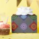 Water, fire, earth, and wind themed concentric circle mandalas come together in this colourful design. Each features a similar centre and outer layer with the others being appropriate to the element.