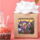 The Emperor’s New Clothes bold and colourful original art painted by our talented children’s illustrator, Traci Van Wagoner, shows the Emperor parading through town in all his new suit glory (with a curtain strategically covering his private parts) in his carriage being pulled by two beautiful horses, one black and one white. A man and his son and dog are watching with the boy pointing out that the Emperor has nothing on at all. Anyone who loves fantasy and fairy tales will love this artwork.