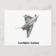 The Eurofighter Typhoon, the worlds most advanced new generation multi-role, swing-wing combat aircraft, seen against a white background, with the title "Eurofighter Typhoon" in black text. The photo was taken at the Dawlish Airshow in Devon, England
