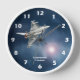 This round clock features a photo of the Eurofighter Typhoon set against a dark, dramatic sky, and lit from below. The Eurofighter is an advanced multi-role, swing-wing combat aircraft. You can add your own name or words to the clock.