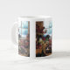 This photo is a picture of a feast laying out on a table. Light coming through the window shows ice on the window. A variety of vegetables, fruits and desserts are ready for the celebration. These mugs come in an assortment of styles, colours and sizes.