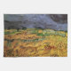 The Fields by Vincent van Gogh is a vintage fine art post impressionism landscape nature painting. A dark and stormy night sky over field of wheat on a farm. Clouds are swirling for the rain storm.
