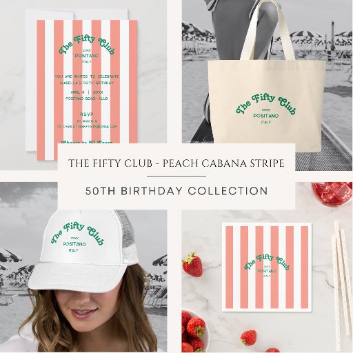 The Fifty Club Peach Cabana Stripe 50th BirthdayDesigned by Pamela Farrell