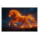 A majestic and powerful horse, composed entirely of swirling, vibrant flames, gallops dynamically across a dark, starry night landscape. Its fiery mane and tail trail brilliant embers and sparks that illuminate the scene, while its intense, glowing eyes convey a fierce and untamed spirit. The horse's muscular form is captured in a dynamic, mid-stride pose, exuding raw energy and motion. This epic vision is set against a dramatic cosmic backdrop of a deep, star-filled sky, with nebulae and distant galaxies adding to the otherworldly atmosphere. The contrast between the dark, celestial expanse and the radiant, living fire creates a breathtaking and heroic scene.