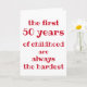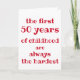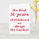 NewParkLane - 50th Birthday Greeting Card, with funny quote 'The First 50 Years of Childhood are the Always the Hardest', in fun, modern, red script typography.