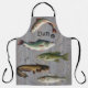This adorable Apron can be used as a multitasking one.  Just think, could be used for the Chef in the kitchen, an outdoors BBQ, Griller or could be used for the fisherman while cleaning his fish after a day on the ocean, lake or river.  The background is a grey plywood plank artwork and then there are multiple fish on the apron.  There is room for their name at Text 1.