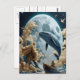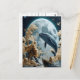 A whimsical illustration depicts a fisherman seated on a wave, casting a line towards a giant whale leaping from the ocean, illuminated by a large, full moon.