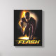 Check out The Flash crouched down in a running start position, lightning striking the ground behind him.