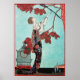 "L'Oiseau Volage"The flighty bird 1914 ,classy French Art Deco high fashion illustration, with a beautiful lady with white pearls and a bird cage ,blue sky ,red leaves in aqua blue ,teal colours .Cool ,modern and artistic design.is perfect for hair dresser,stylish hair stylist,theatrical make up artists,costumers,jewel designers,jewellery ,jeweller ,boutique owners,theatre actresses,models,cosmeticians,cosmetologists,perfume,personal shoppers,wardrobe consultants,fashion designers, fashionista,entertainment industry and other creative professions.