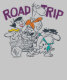 Check out Fred towing a cart with his wife, friends, and pets as they go on a road trip!