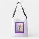 It's very roomy. The fabric is soft and flexible, and the strap is wide and adjustable to fit across the body. The printing is true to the photo.