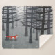 A wild red fox stands among trees in a dark forest. A landscape painting for animal, nature and wildlife lovers.