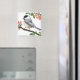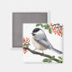 Original fine art design of a male Black Capped Chickadee by artist Carolyn McFann printed on a quality magnet for wild bird lovers.