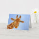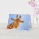 This enchanting oil painting of a friendly African giraffe by Sharon Carter really takes your eye. Gazing placidly towards you it makes eye contact, following you around whatever direction you view it from. This card can be personalised with your own message on the inside to suit any occasion.