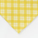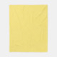 "The front of the fleece blanket features a yellow and white checkered pattern, while the back is plain white with visible fabric texture and gentle creases."