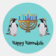 Graphic illustration of penguins enjoying the Hannukah menorah lights. Celebrate the miracles of Chanukah all eight nights!