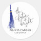 Fun and modern graduation party favour sticker featuring typography text with an inspirational quote that says "the future is bright" with an illustration of blue tassel.