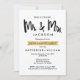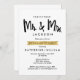 Newly engaged! Send out this elegant and chic engagement party invitation to family and friends. The design features the words "Mr. & Mrs." in a chic black handwritten font and a faux gold foil ribbon under the words "Engagement Party". Personalise the design by replacing the text. Please contact the designer if you have any design customisation requests.