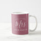 The future Mrs engagement gift coffee mug, a chic, modern and simple design with the text mrs in white elegant script on a purple cassis background. Simply add your name and address. Exclusively designed for you by Happy Dolphin Studio. If you need any help or matching products please contact us at happydolphinstudio@outlook.com. We're happy to help you make your engagement party a wonderful event!