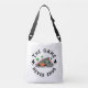 It's very roomy. The fabric is soft and flexible, and the strap is wide and adjustable to fit across the body. The printing is true to the photo.