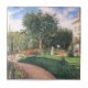 The Garden of Les Mathurins at Pontoise . Camille Pissarro. Cute summer landscape in warm colours. In a flowering garden there is a large house with a red roof. A woman is walking in the garden. There are light clouds in the blue sky. Reproduction of famous works of art images in the public domain.