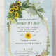 Mint green tablecloth with sunflowers, lemons and corn for a smart patio display for a spring wedding garden party for the wedding couple.