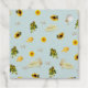 Mint green tablecloth with sunflowers, lemons and corn background with gold foil at the front for a smart patio display for a spring wedding garden party