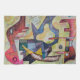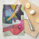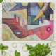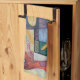 A colourful abstract design on a towel ready to tackle the kitchen duties.