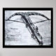 Ancient Balestra sketch and studies of Leonardo da Vinci c.1500, pen and ink on paper in black white grey colours.