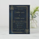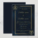 This sophisticated invitation template captures the timeless opulence of the Art Deco era. Set against a deep, textured blue background, the design features a striking geometric gold frame composed of clean, parallel lines. The highlight of the piece is the stylised, angular orchid motifs in the top-left and bottom-right corners, blending organic floral shapes with architectural precision. It is an ideal choice for high-end events, black-tie weddings, or gala evenings where luxury and understated elegance are the themes.