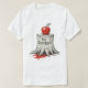 A red apple sits on a tree stump with "No Contact" scrawled in black letters. The stump's got rough, jagged edges with red paint splatters and drips around the base, giving off a vibe of violence and separation. The background's a plain white, making the stark colours and sharp lines pop.