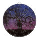 An ACEO watercolor painting of an old, gnarly orchard tree silhouetted against the blues, purples and pinks of the evening sky.