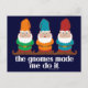 The Gnomes made me do it. 3 different coloured gnomes hanging out. Parody / spoof of The devil made me do it. 3 gnome images.